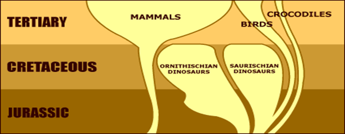 Only after dinos went extinct, birds & mammals started massive adaptive radiation into different species