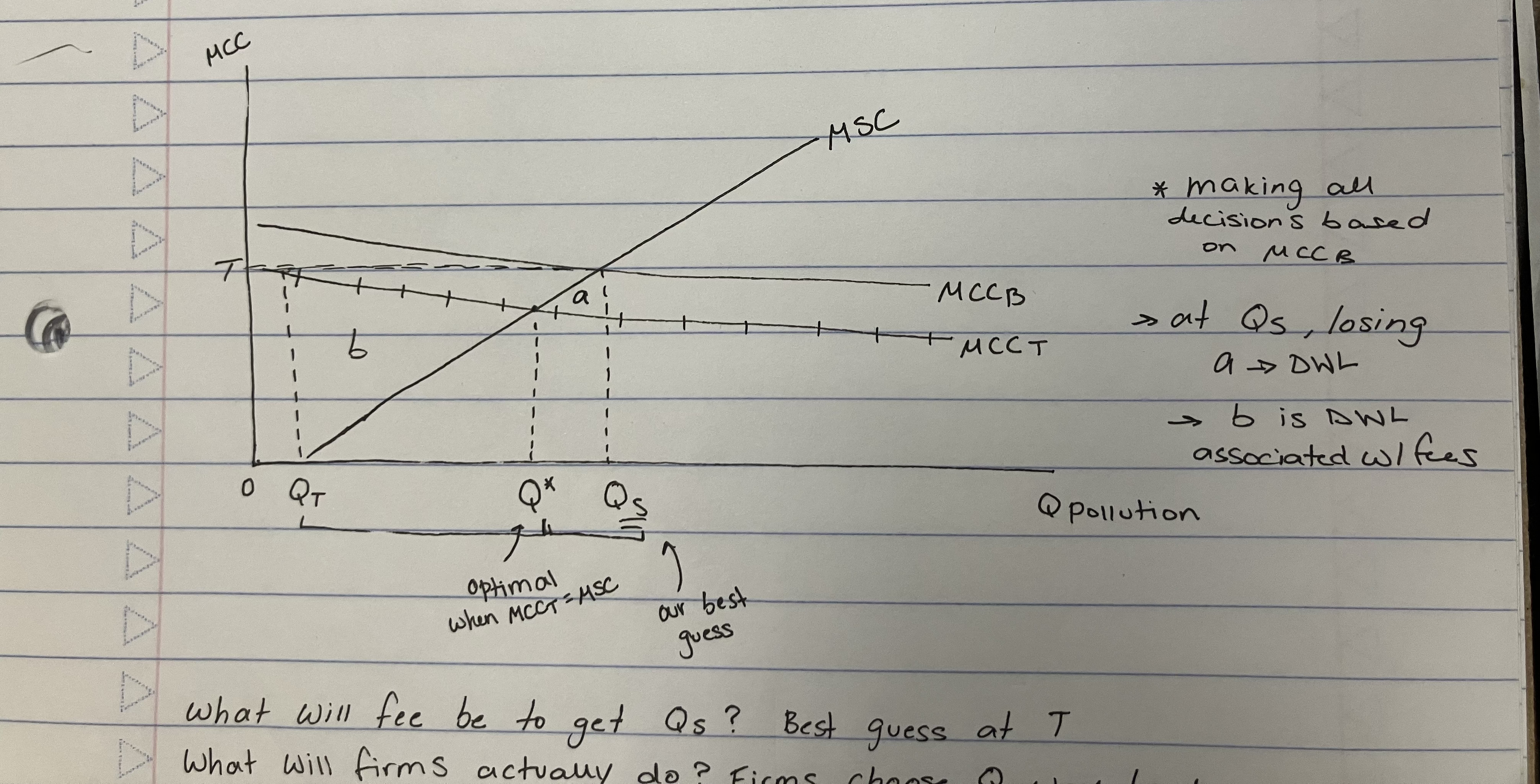 Sets fee across all firms (not knowing individual MCC curves) → not sure how much pollution reduction will occur.