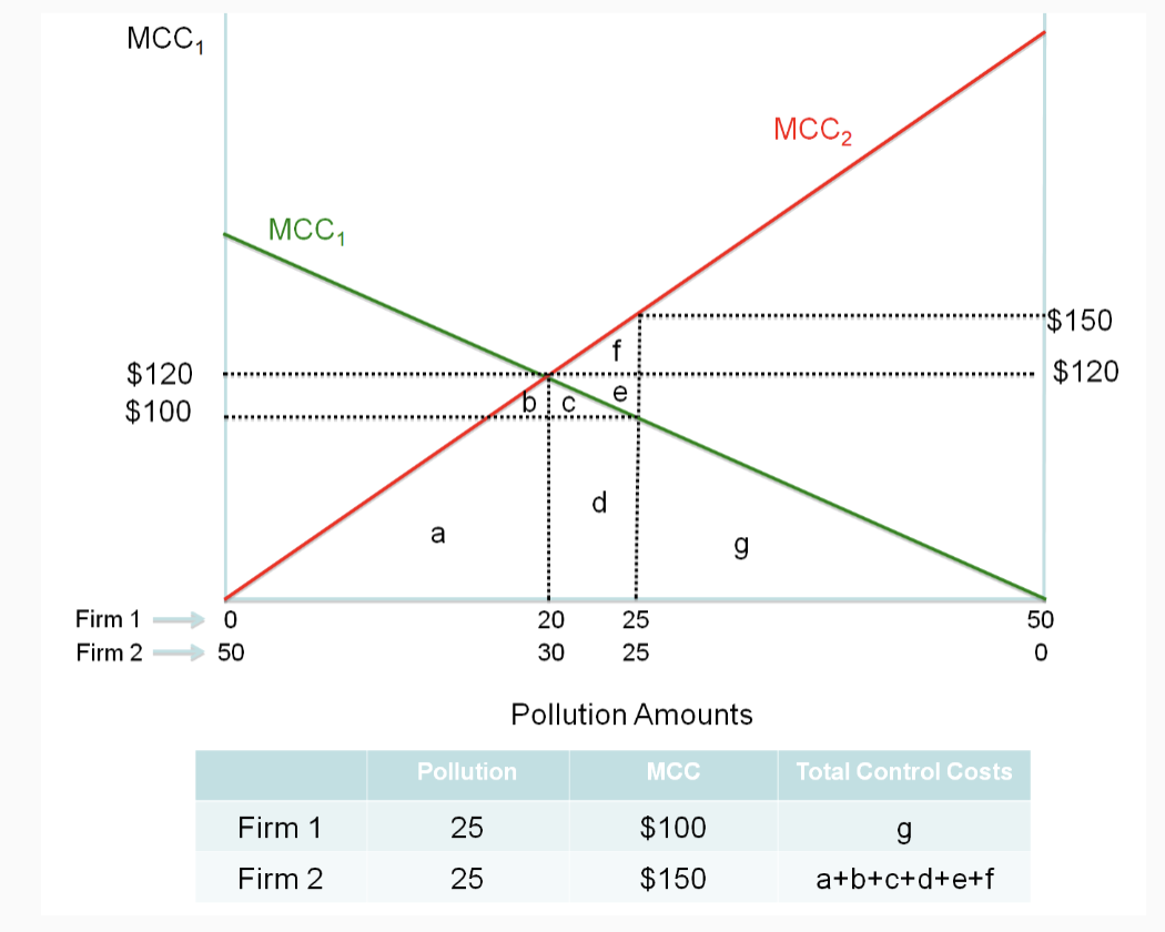 If firm 1 pollutes 0, firm 2 can pollute 50 and vice versa.