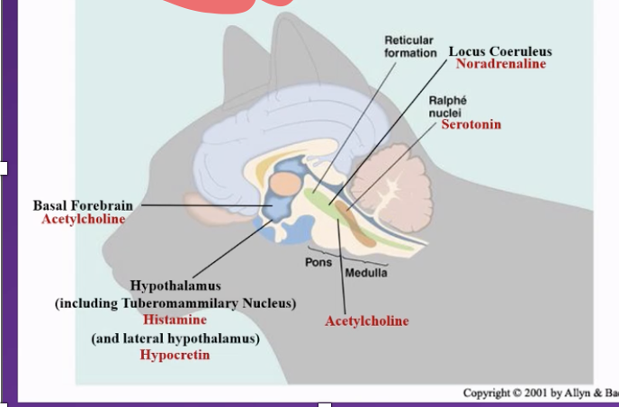 – One group is part of the Reticular Activating System and based in the Pons (Metencephalon brain region)