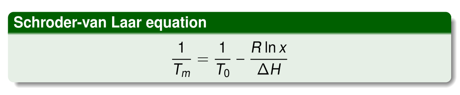 •Explain how the SvL equation can be used to determine the purity of a drug substance. How do impurities affect the melting point?