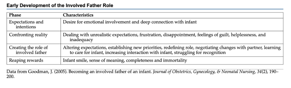 what are the 4 STAGES OF PATERNAL POSTPARTUM ADJUSTMENT according to GOODMAN