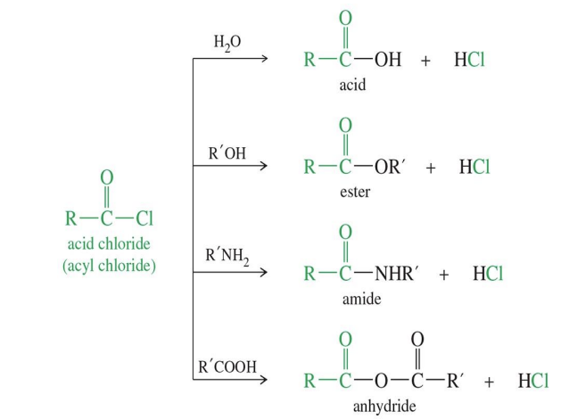 The Cl removes a proton (H⁺) → forms the anhydride product