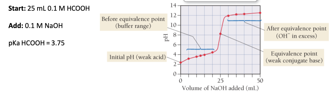 B. What is the pH of a solution after mixing 25.0 mL 0.1 M HCOOH with 15.0 mL 0.1 M NaOH? HCOOH + NaOH → HCOO Na + H-OH