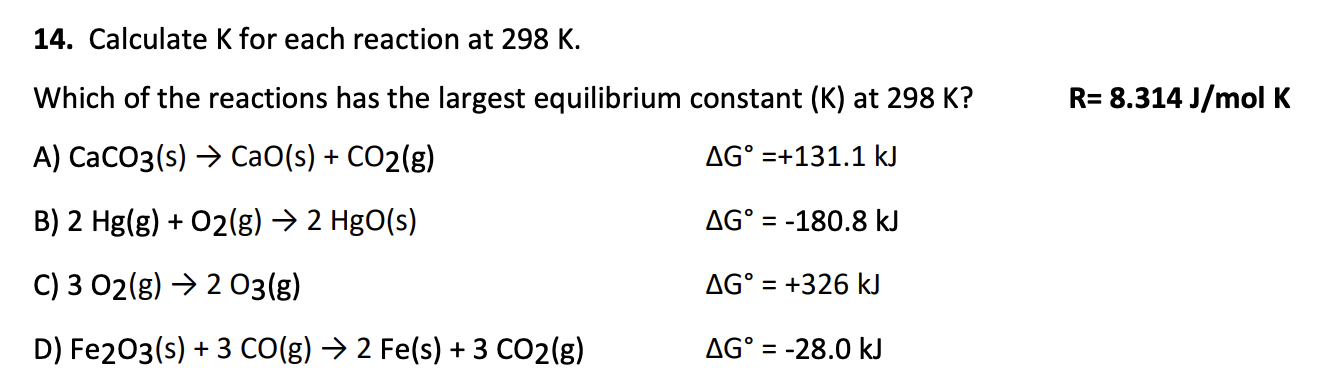 Kp = 9.4 x 10–5 . Calculate the value of ΔG° for the reaction under these conditions.