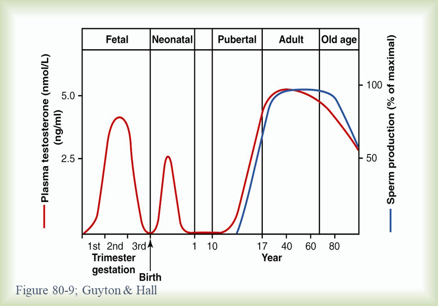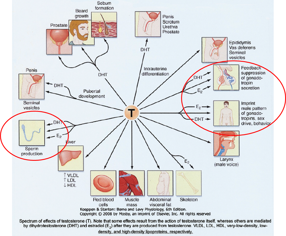 •Growth and development of male genitalia and reproductive structures (vas deferens, epididymis, glands, etc.)