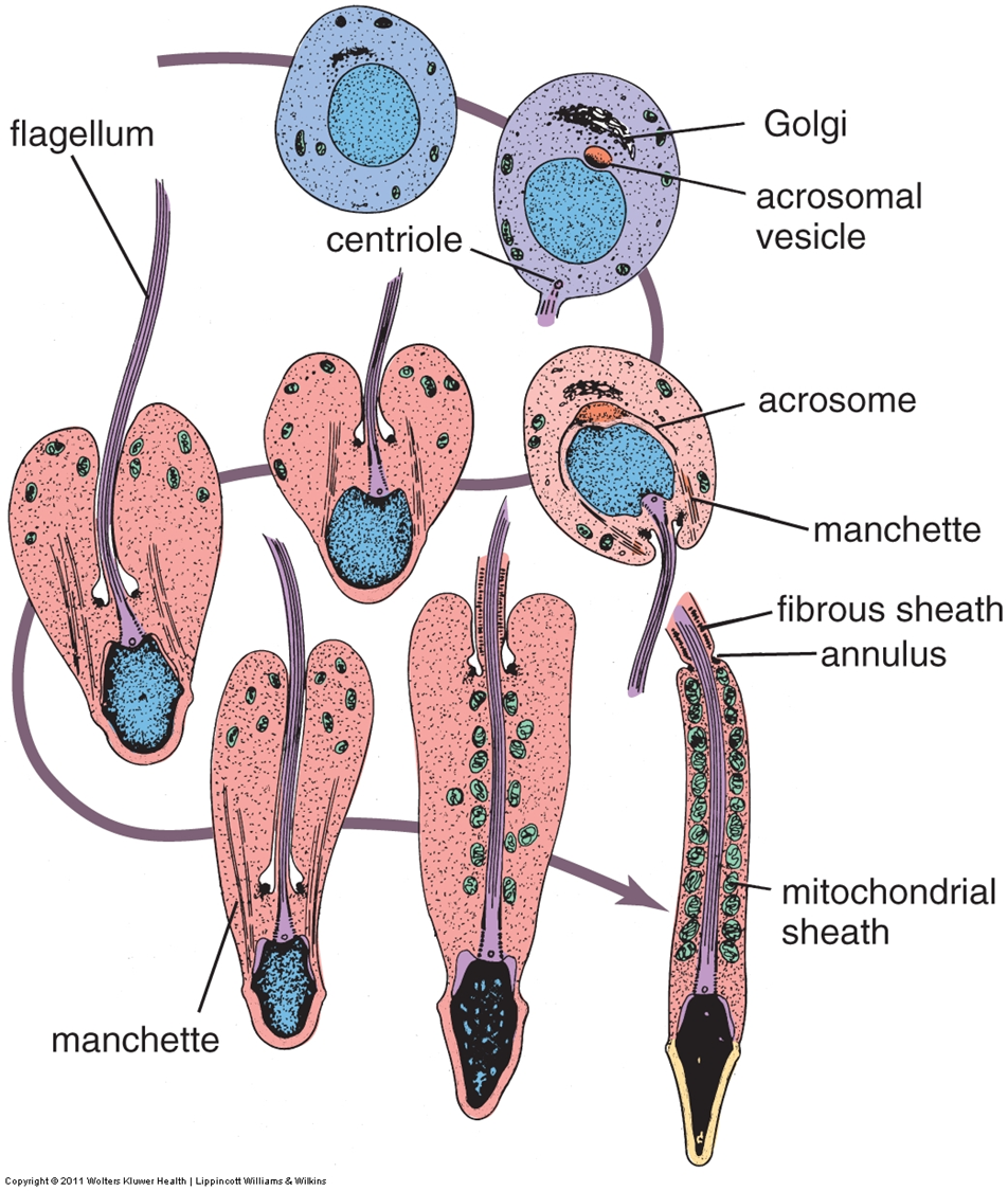 Spermiogenesis is a process in the seminiferous tubules where there is a change from spermatid to mature sperm (spermatozoa)
