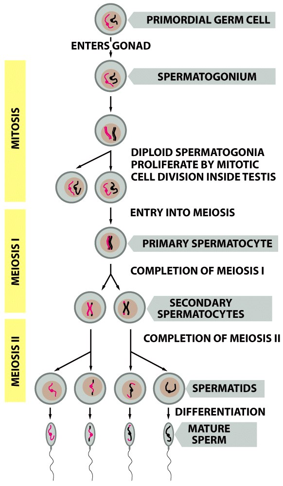 2) Spermatogonium will undergo spermatocytogenesis which is where spermatogonium enter into Meiosis I in order to become primary spermatocytes (have 92 chromatids)