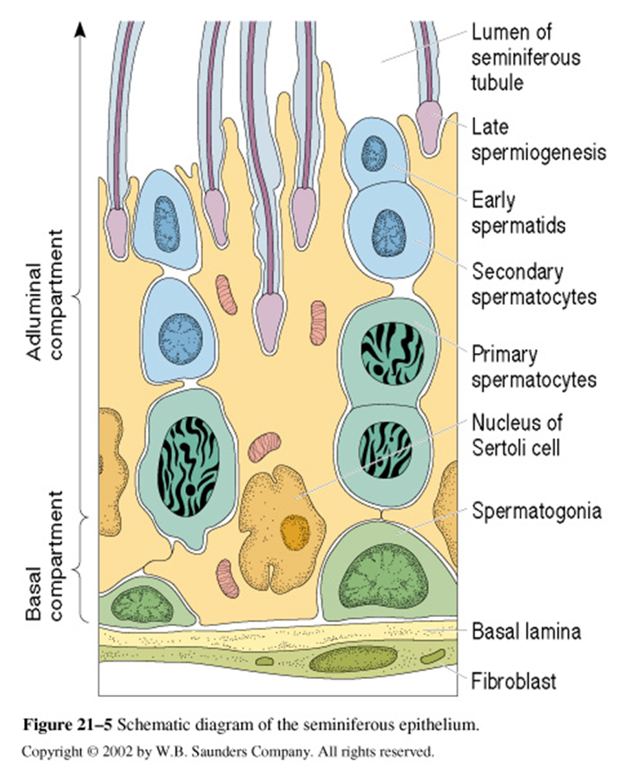 → Sertoli cells also form occludin tight junctions between one another forming the blood-testes barrier