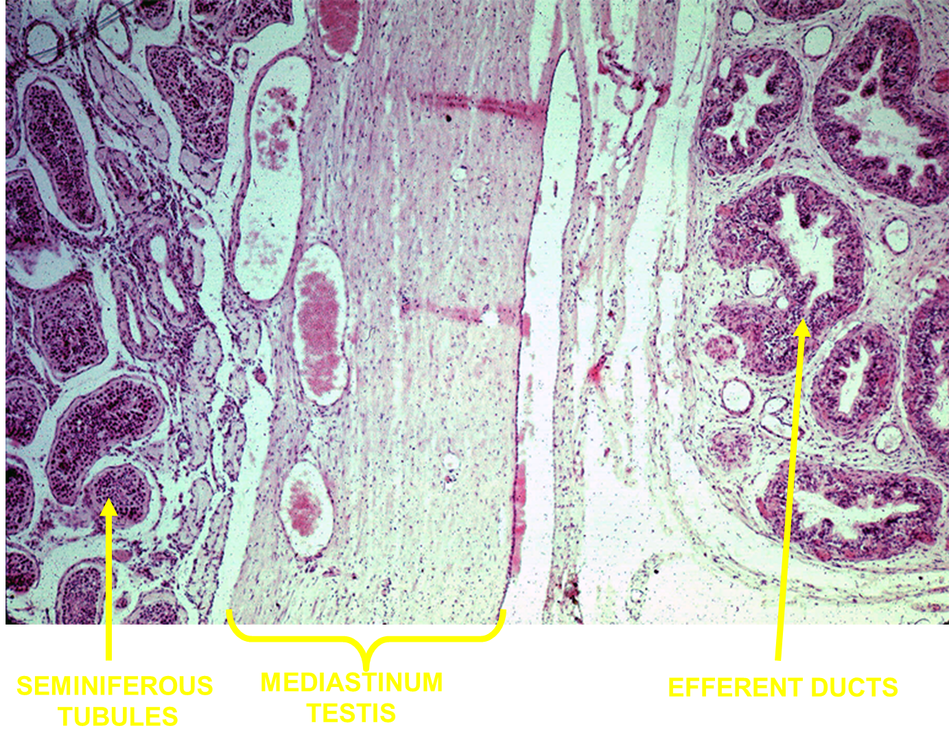 → tubuli recti will empty together into the rete testis located in the mediastinum