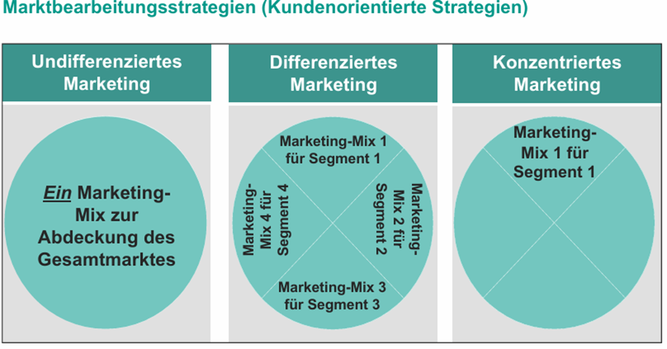 Grenzen Sie undifferenzierte, differenzierte und konzentrierte Marktbearbeitungsstrategien voneinander ab.