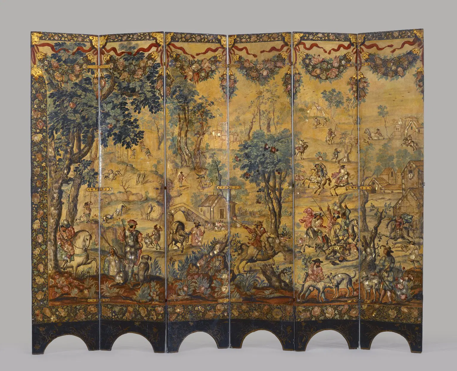 Screen with Siege of Belgrade and Hunting Scene