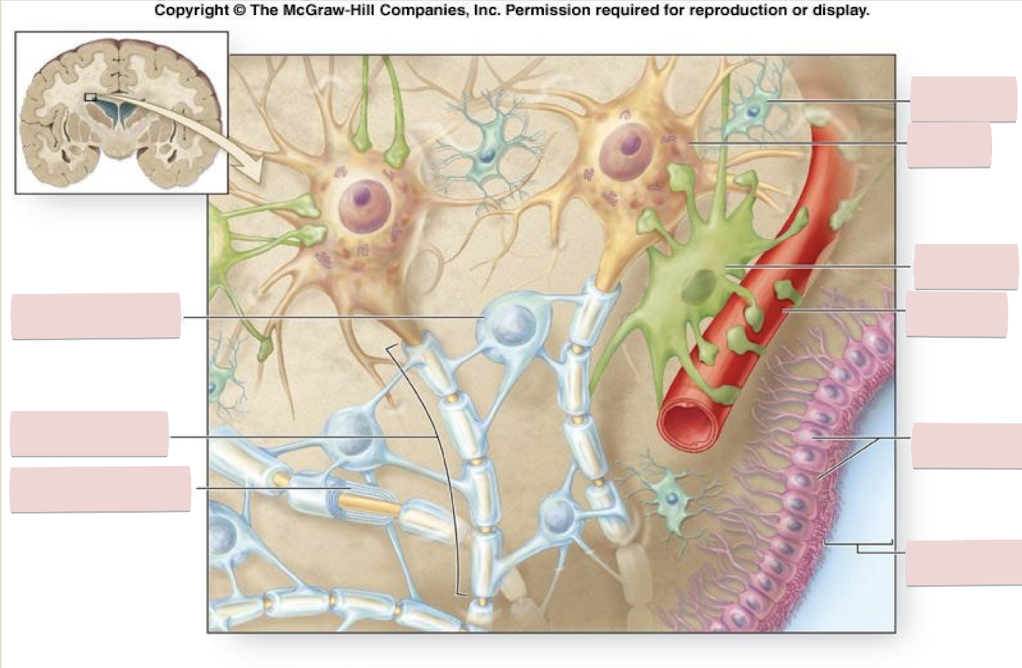 The processes on astrocytes extend to interact with…