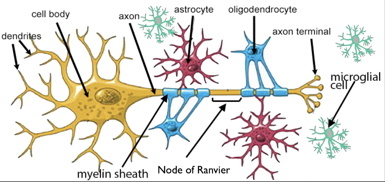 processes extending from their main cell body