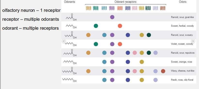1 receptor can detect many different molecule(odorant)