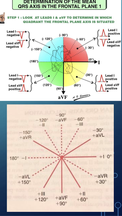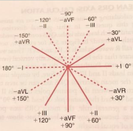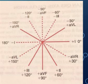 The positive pole of lead I is 0˚; all points below the lead I axis are positive and all points above are negative.