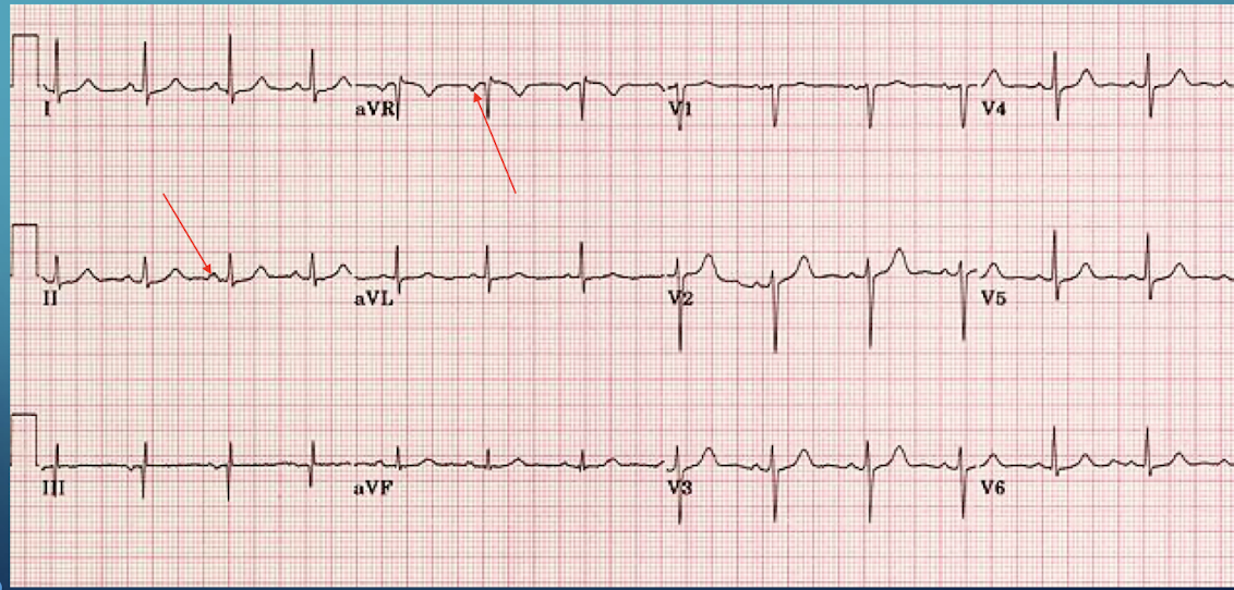A normal P wave is negative in lead aVR and positive in lead II; axis is approximately 60