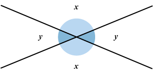 where 2 lines intersect, the opposite angles are equal. where 2 angles sit on a horizontal line the total angle together is 180°