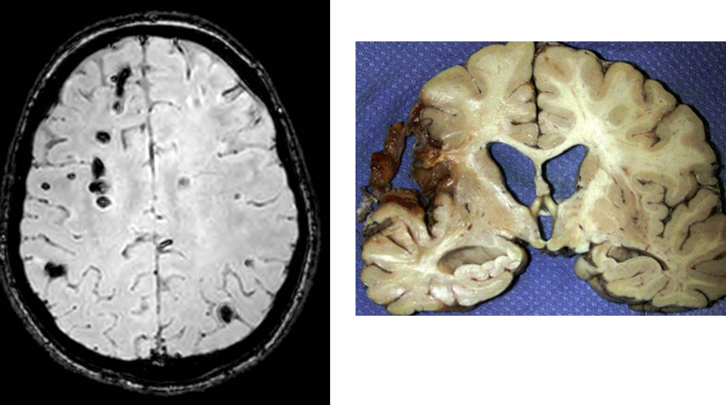 → the peptides will weaken blood vessels causing microbleeds, which are often asymptomatic but can lead to bigger bleeds
