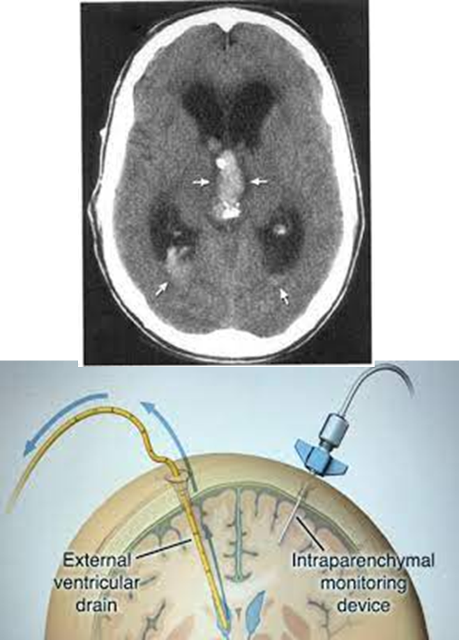 → often occurs in patients with extension of hemorrhage into a ventricle