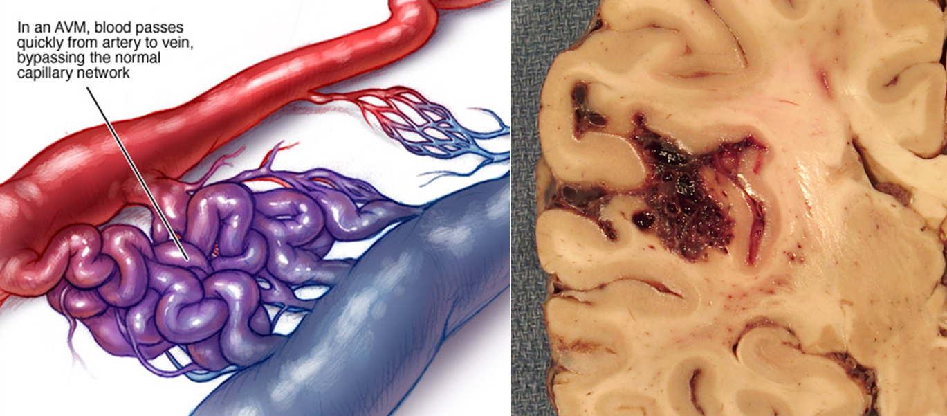 1) AVMs are congenital malformations where there is a direct connection between arteries and veins without a intermediate capillary bed