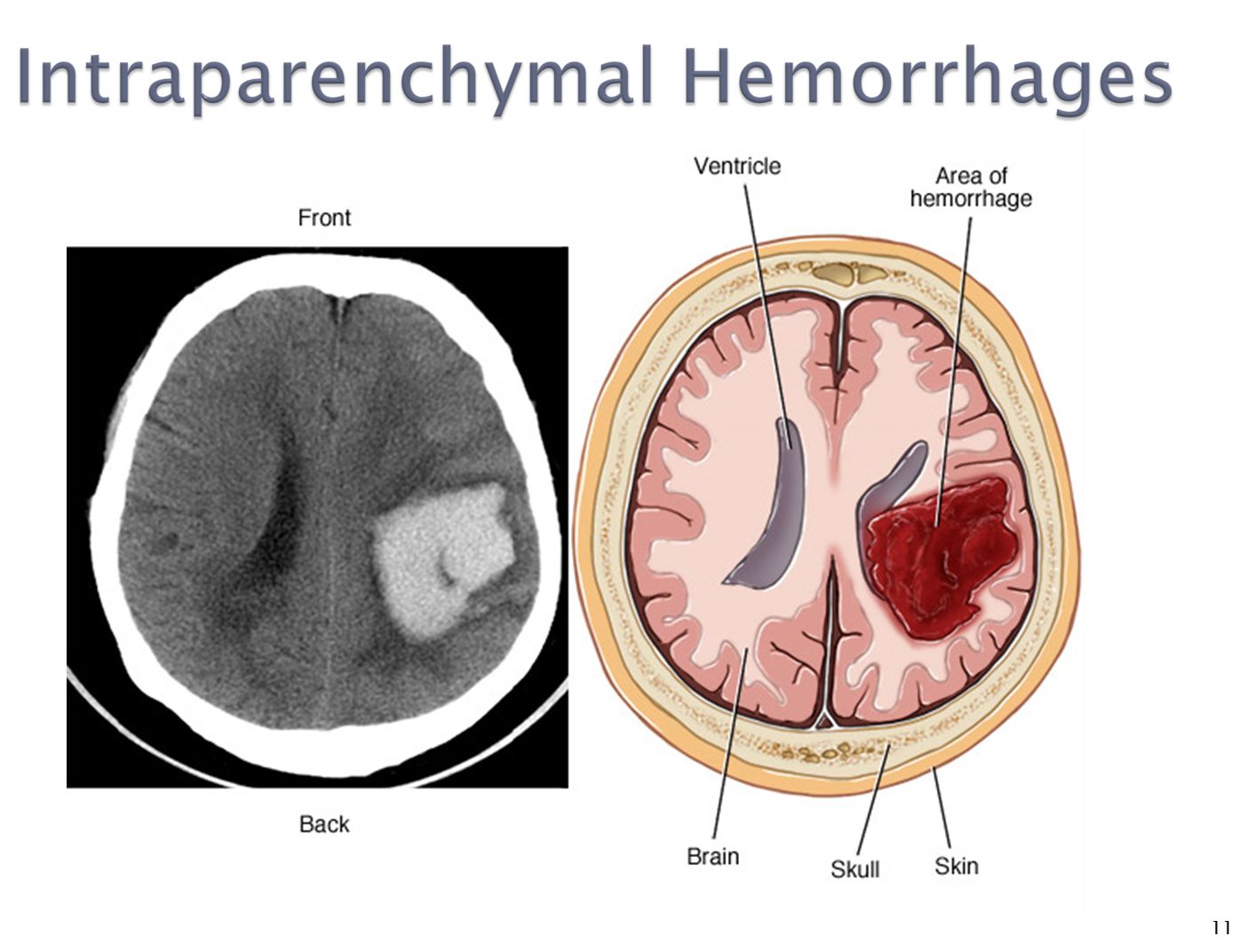 Intraparenchymal Hemorrhages result from rupture of vessels within the brain resulting in the formation of a hematoma