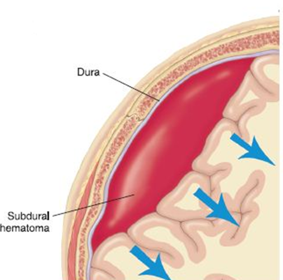 Subdural hemorrhage is a bleed into the subdural space between the dura and arachnoid layer