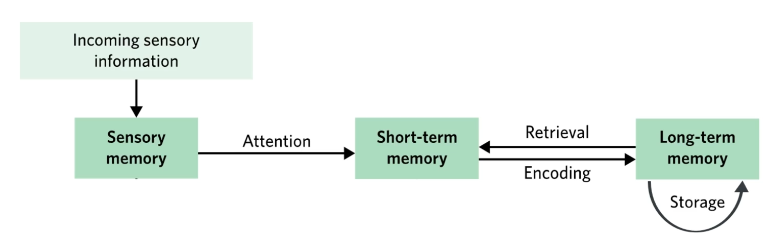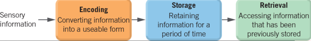 Retrieval: The process of accessing information that has been stored in long-term memory and bringing it into our conscious awareness in short-term memory.