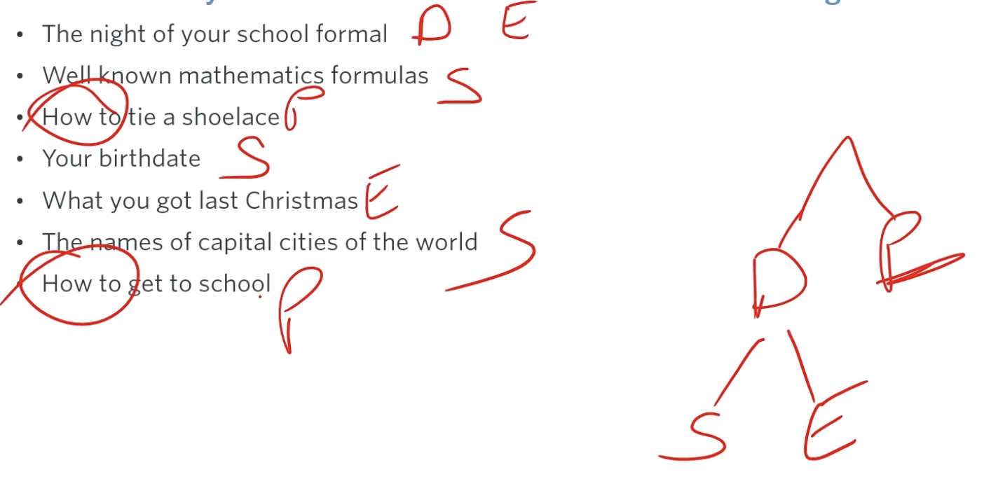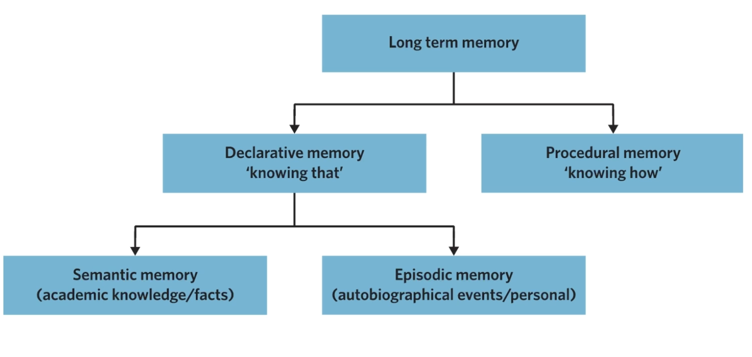 Declarative memory: ‘knowing that’ example: knowing that my mum’s birthday is on that day, knowing that my school formal is in 2 weeks