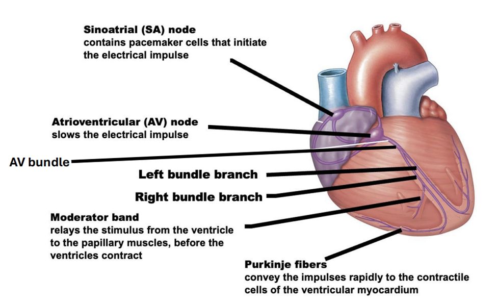 - Distribute the contractile stimulus to the myocardium