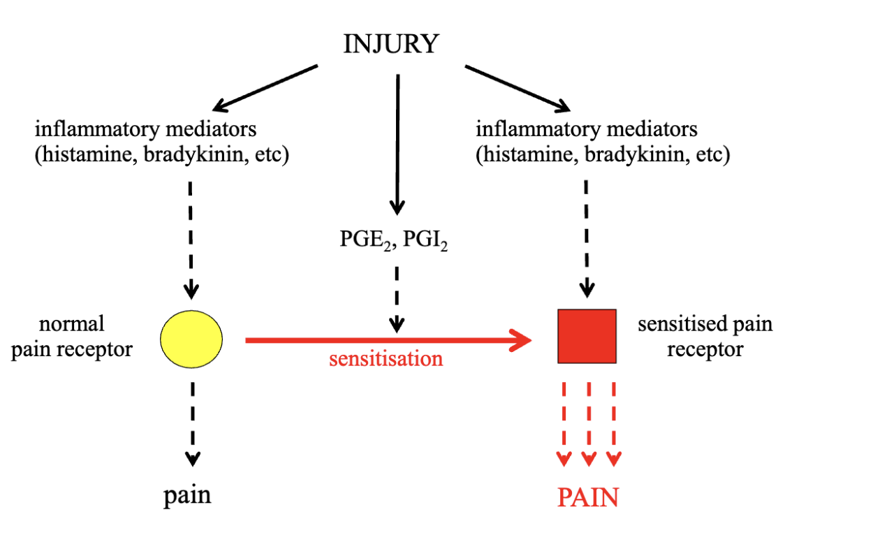 sensitisation of pain receptors