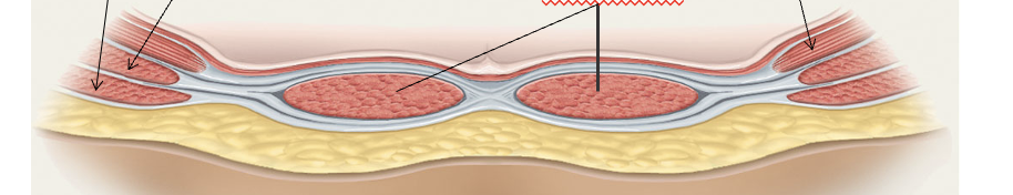 also has an aponerosis in the midlene that forms the anterior rectus sheath (thhoracolumbar fasica