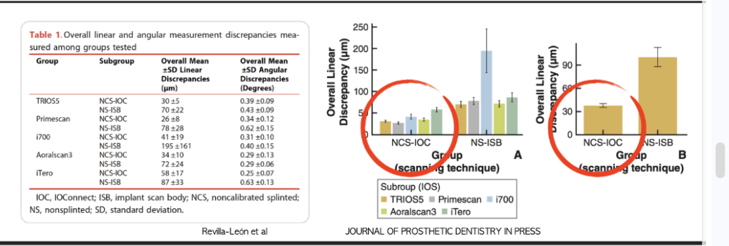 NCS-IOC = Non-Calibrated Splinted – Implant-On-Connect (implant scan bodies are connected together before/during scanning, but not precisely calibrated).