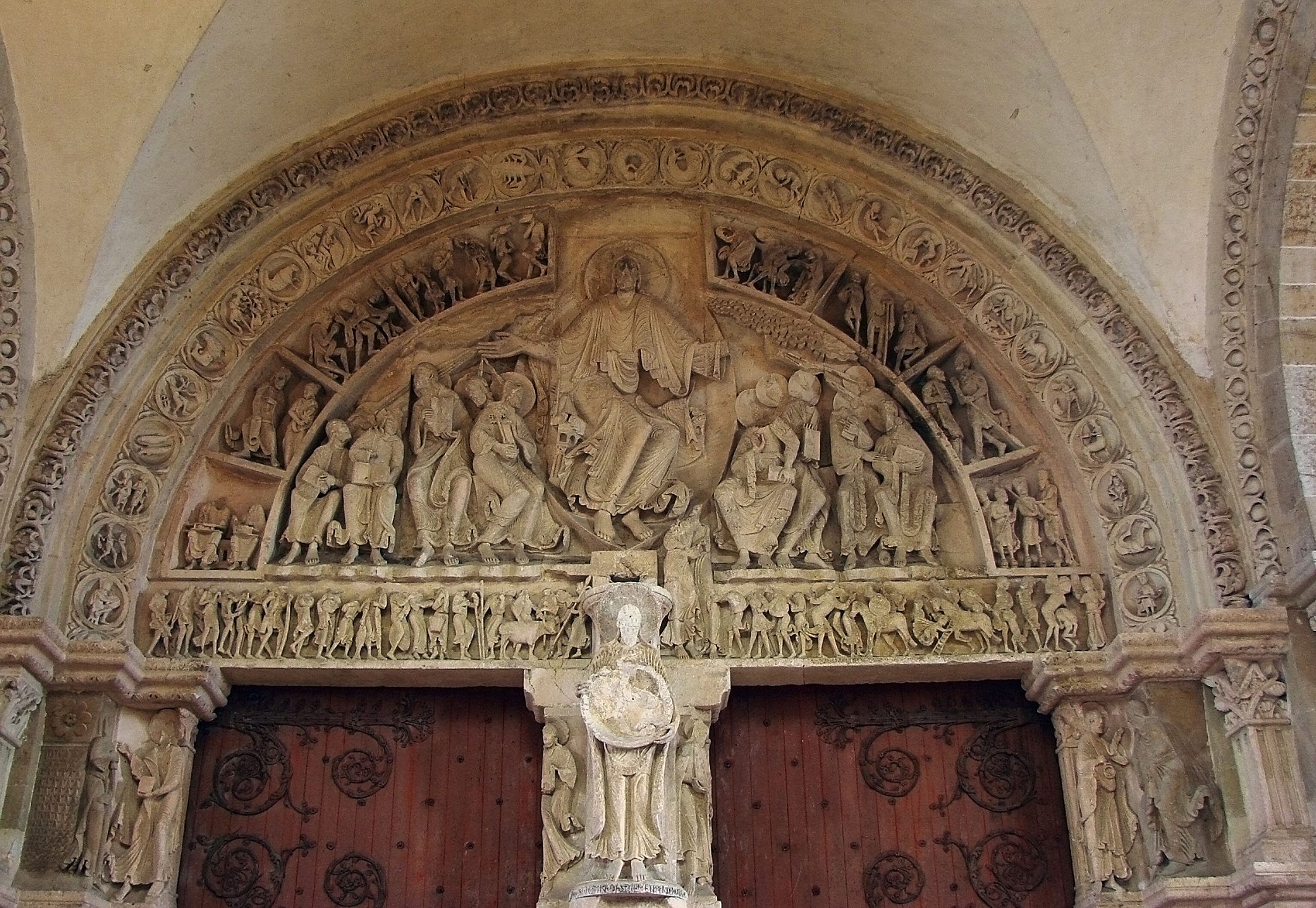 semi-circular sculpted area above a church doorway.
