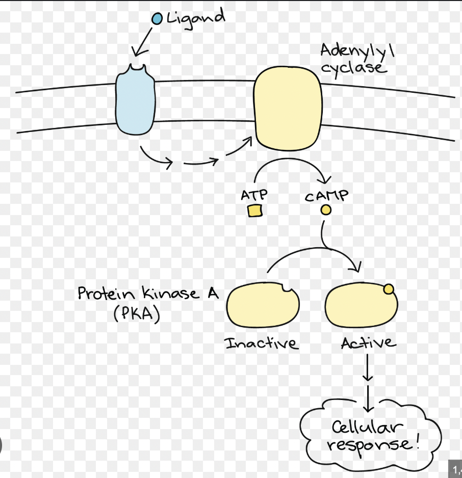 The cAMP is used as a secondary messenger and activates an inactive protein