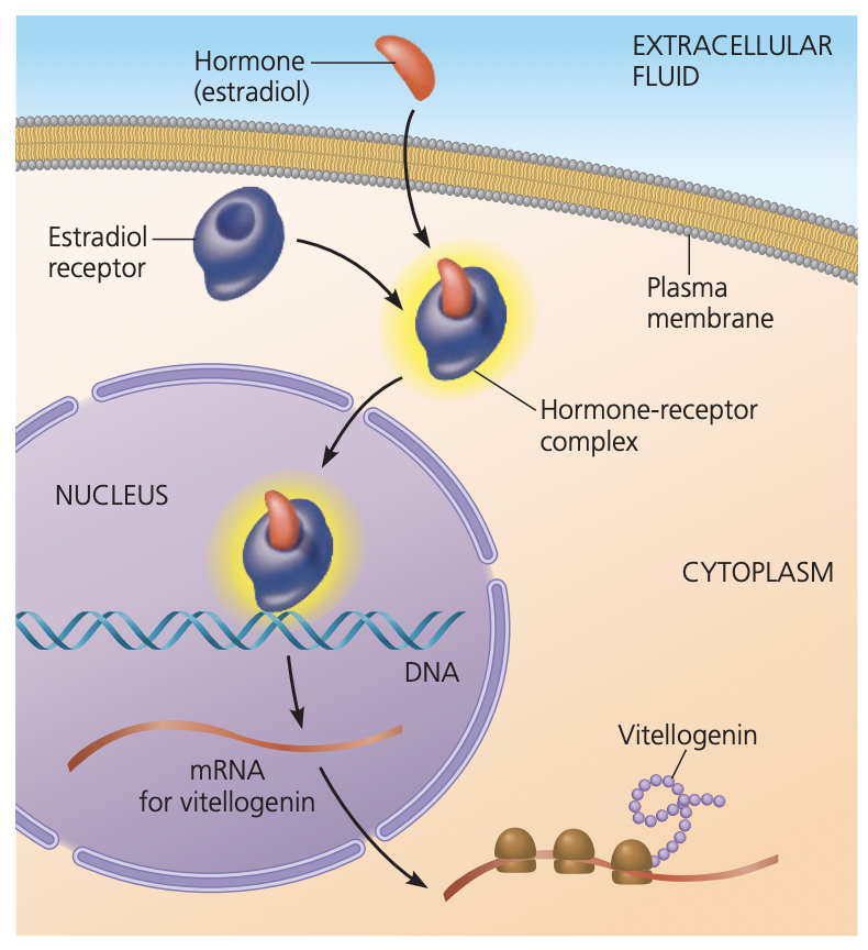 they are lipid soluble and hydrophobic so they can enter target cells and bind with intracellular receptors that elicit a response