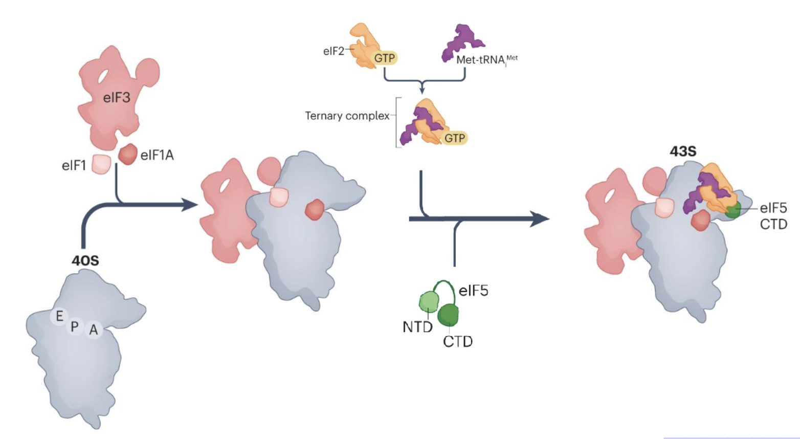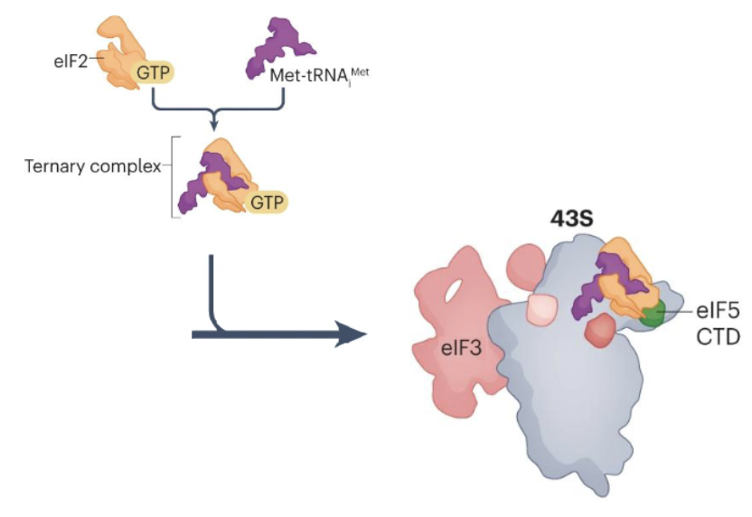 eIF5 and ternary complex of eIF2, GTP and met-tRNA then bind to form a 43S translation PIC