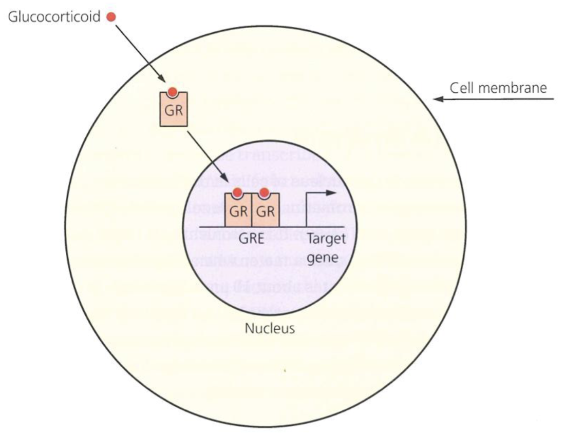 Steroid hormones pass through the cell memebrane and bind to their particular intracellular steroid receptors (aka nuclear receptors) in the cytoplasm