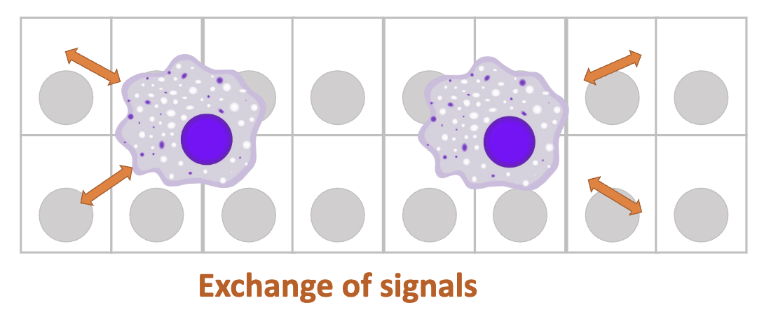 Immune cells: travel through body, adapt to tissues, scan for invaders