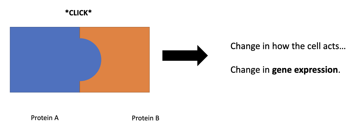 Example: Protein A (ligand) + Protein B (receptor) → click → change in cell behavior