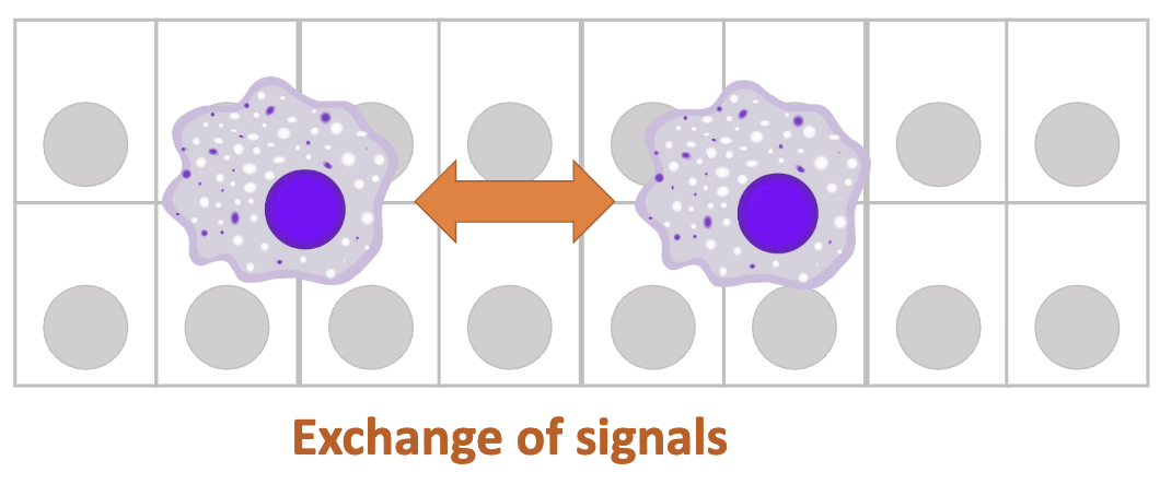 Indirect communication – via soluble mediators (e.g., cytokines)