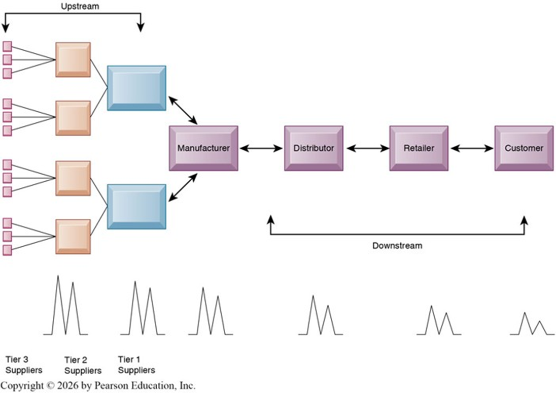 –Information about product demand gets distorted as it passes from one entity to next across supply chain