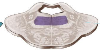 Joins caudally with intermediate gray matter of the spinal cord