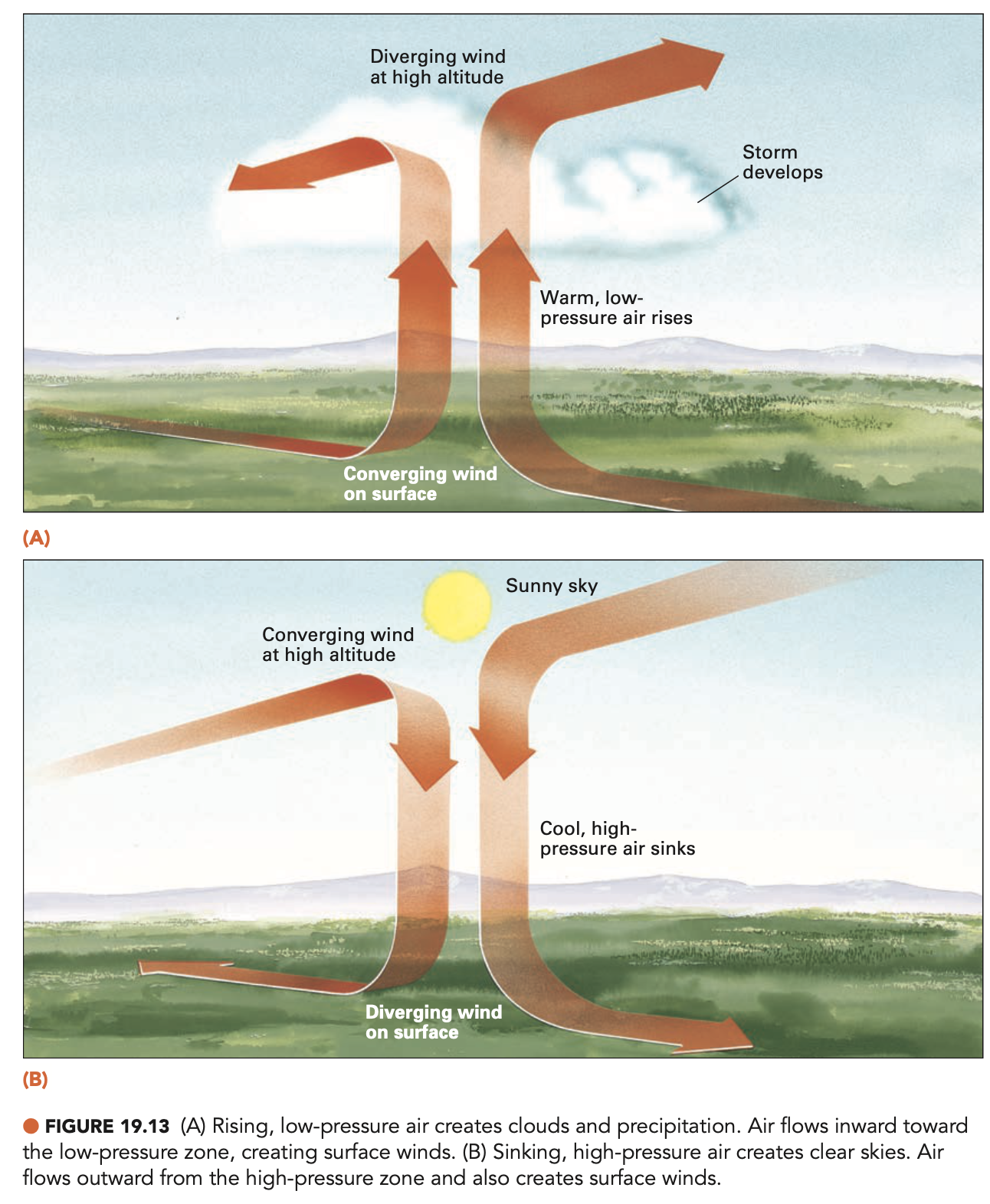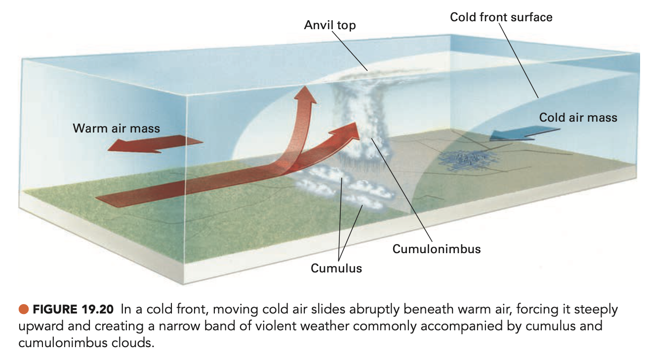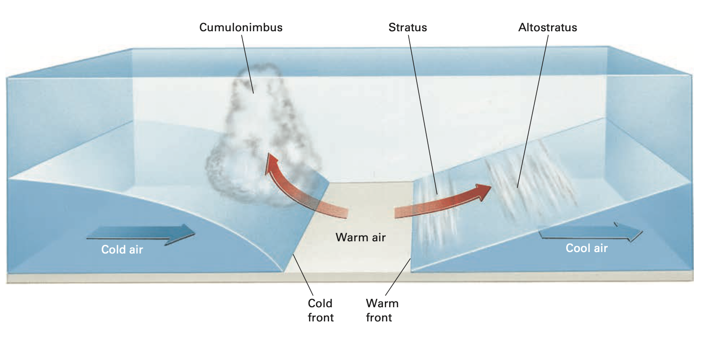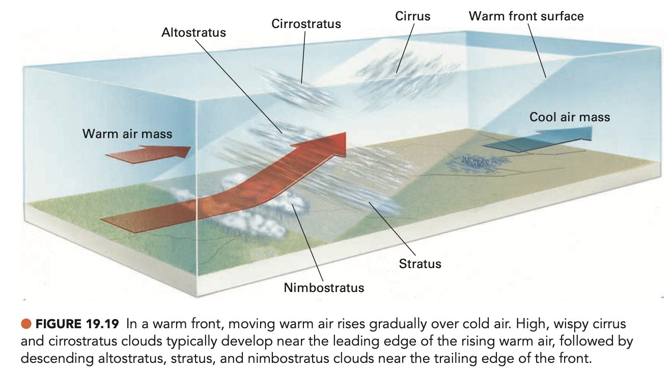 leads to stormy weather. warm air pushes/rises = causes change in weather/precipitation