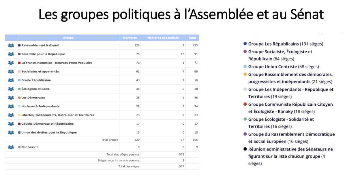 Les groupes politiques à l’Assemblée et au Sénat