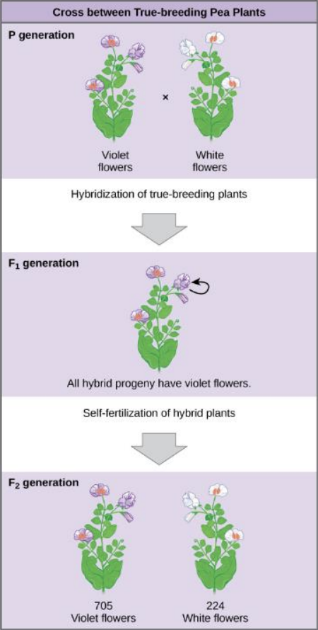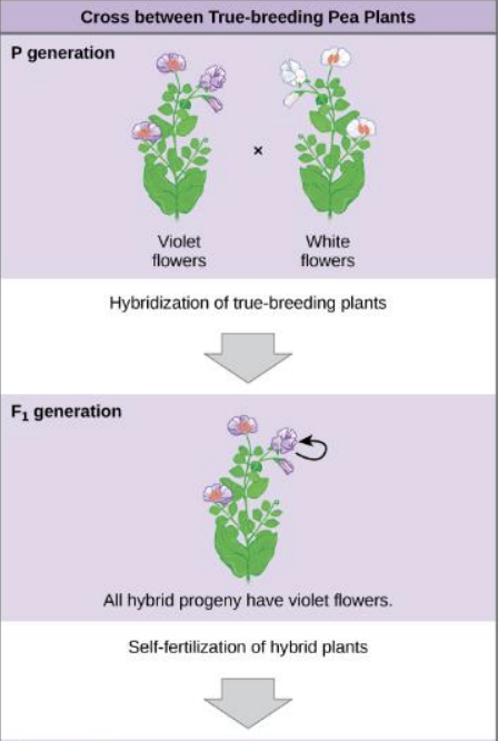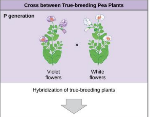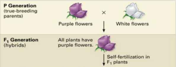He crossed a true-breeding purple flower with a true-breeding white flower