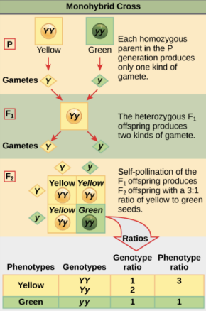One of the two traits would disappear completely from the F1 generation, only to reappear in the F2 generation at a ratio of roughly 3:1