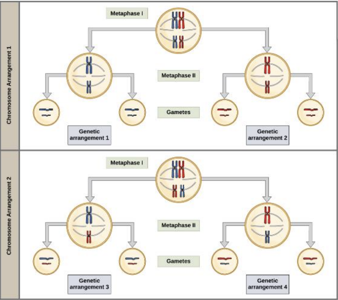 It lies in meiosis I, where different homologous pairs line up next to each other in random orientations during metaphase I