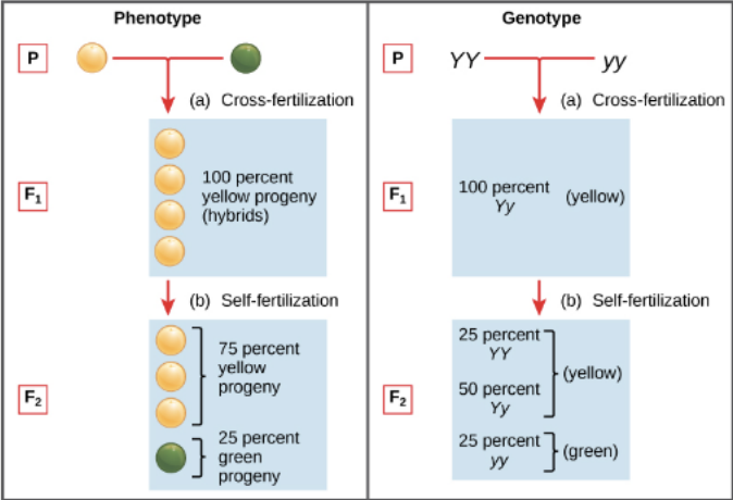 The F1 generation (first filial generation): the offspring from the P generation plants