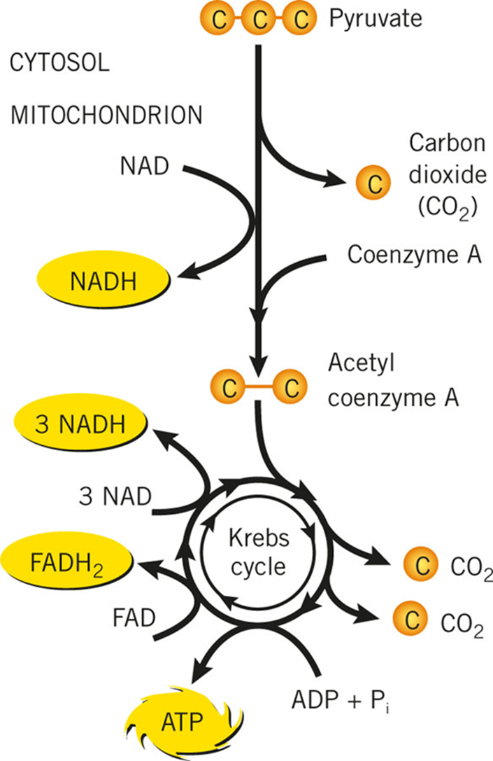 → NADH and FADH2 cannot become NAD+ and FAD, so Krebs cycle cannot occur